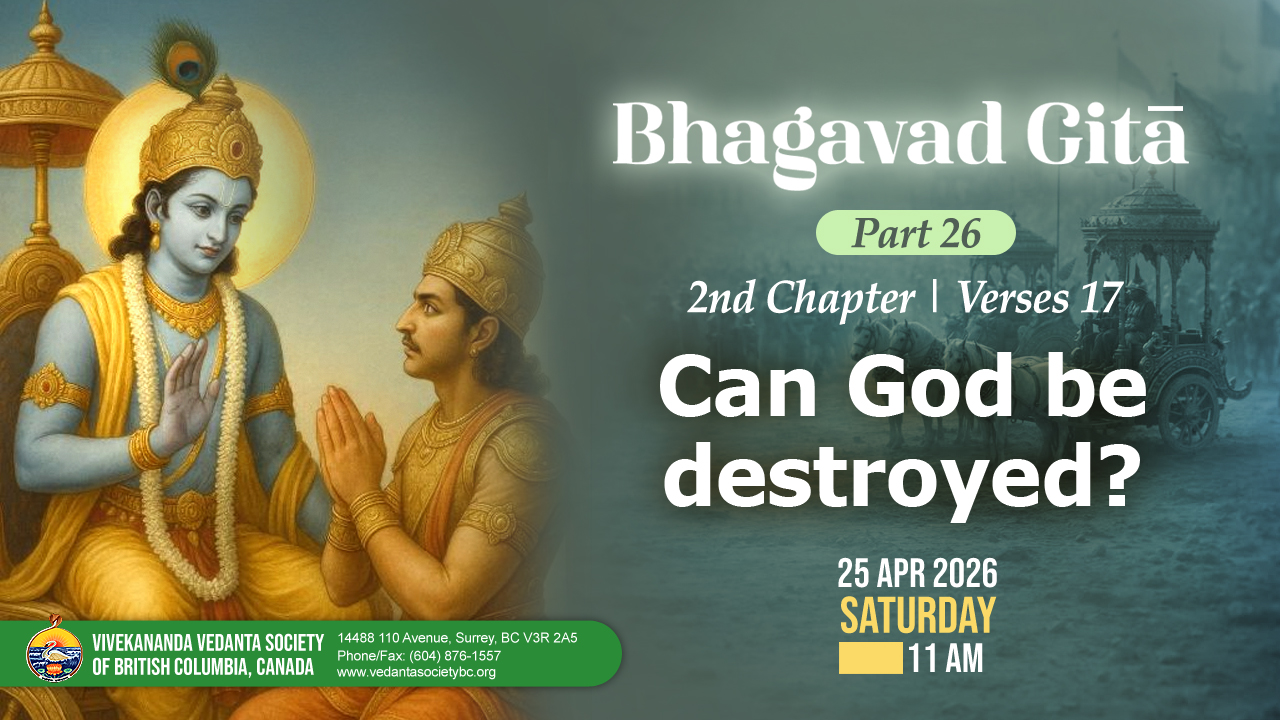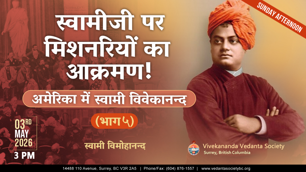 The Vivekananda Vedanta Society of British Columbia is affiliated to the Ramakrishna Order founded by Swami Vivekananda, which has its headquarters in Belur Math, India.